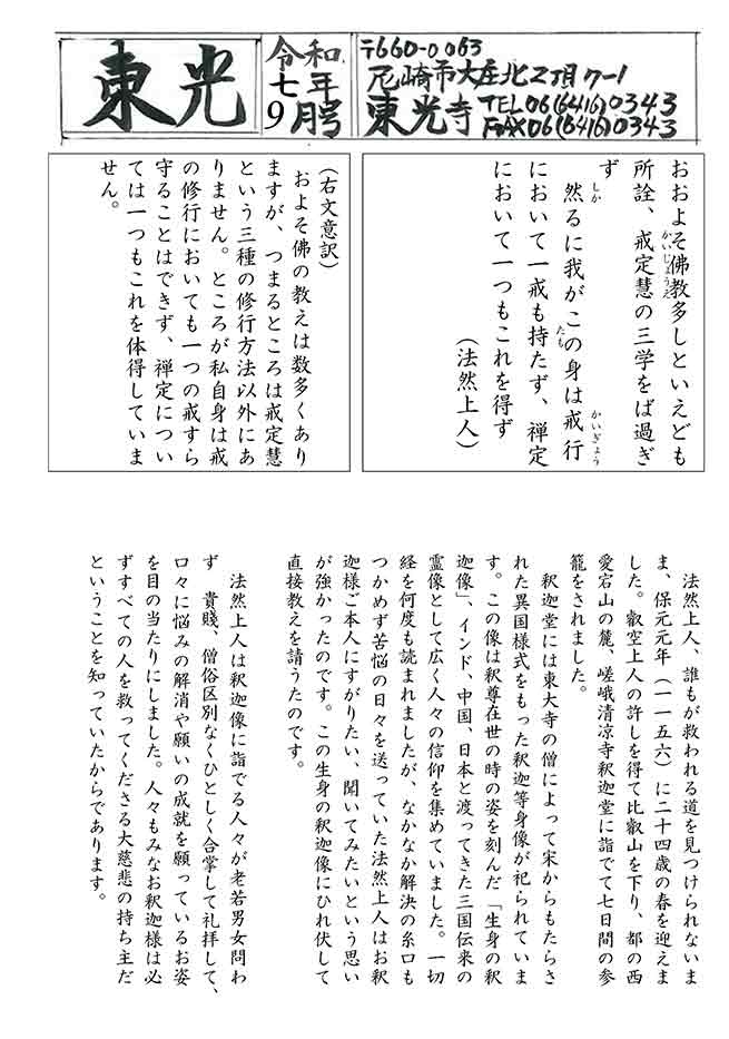 東光十月号はお休みします。