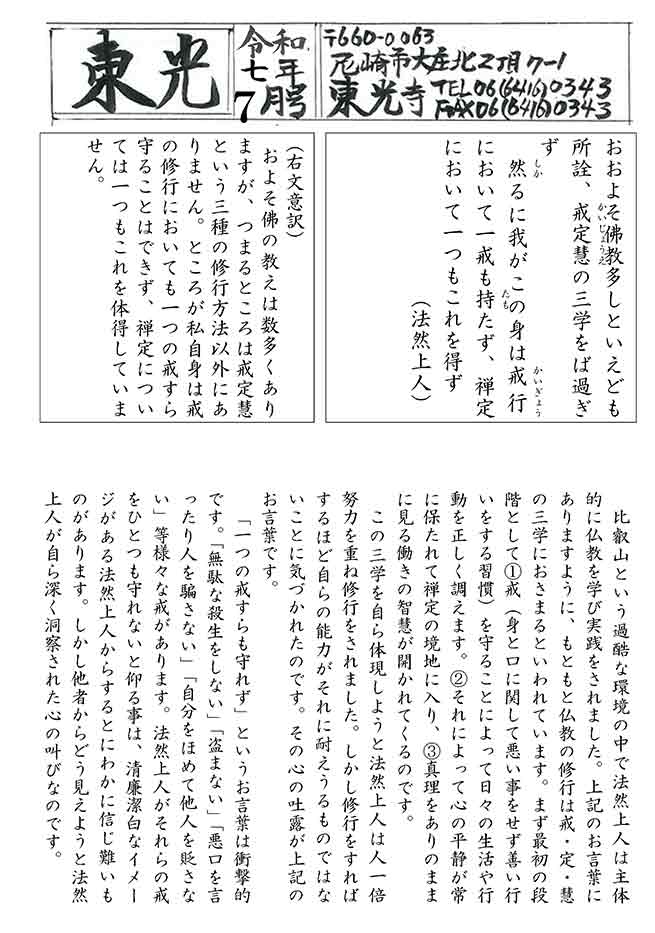 ●東光寺清掃奉仕 七月二十六日(土)午後四時より